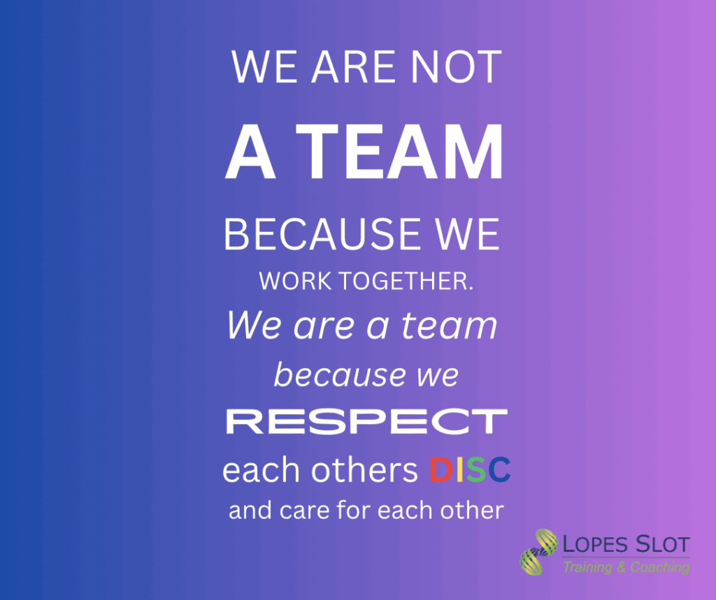 Mijn advies aan de studenten: bekijk af en toe de informatie nog eens en oefen met het herkennen van de DISC-kleuren van iemand anders. Wees nieuwsgierig en blijf leren. En dan een laatste afsluiter: Als er één woord centraal in de team-cirkel zou moeten staan, dan is dat wat mij betreft het woord RESPECT voor elkaars DISC-kleuren. Veroordeel elkaar niet, maar kijk naar mogelijkheden en groeikansen. Respecteer elkaar en probeer je te verplaatsen in de ander. Je bent nu wie je bent, maar je kunt wel elke keer weer een betere versie van jezelf worden!